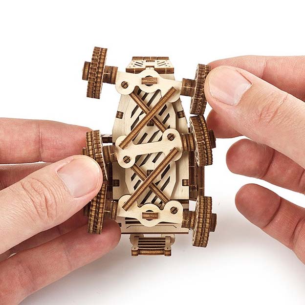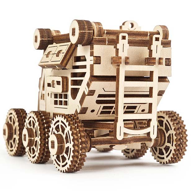 Der Mars Buggy von Ugears ist ein Einsteiger-bausatz ideal für alle, die sich erstmal mit den mechanischen Modellbausätzen vertraut machen möchten. Das mechanische Modell verfügt unter anderem über sechs drehbare Räder und eine öffnenbare Lucke auf dem Dach.