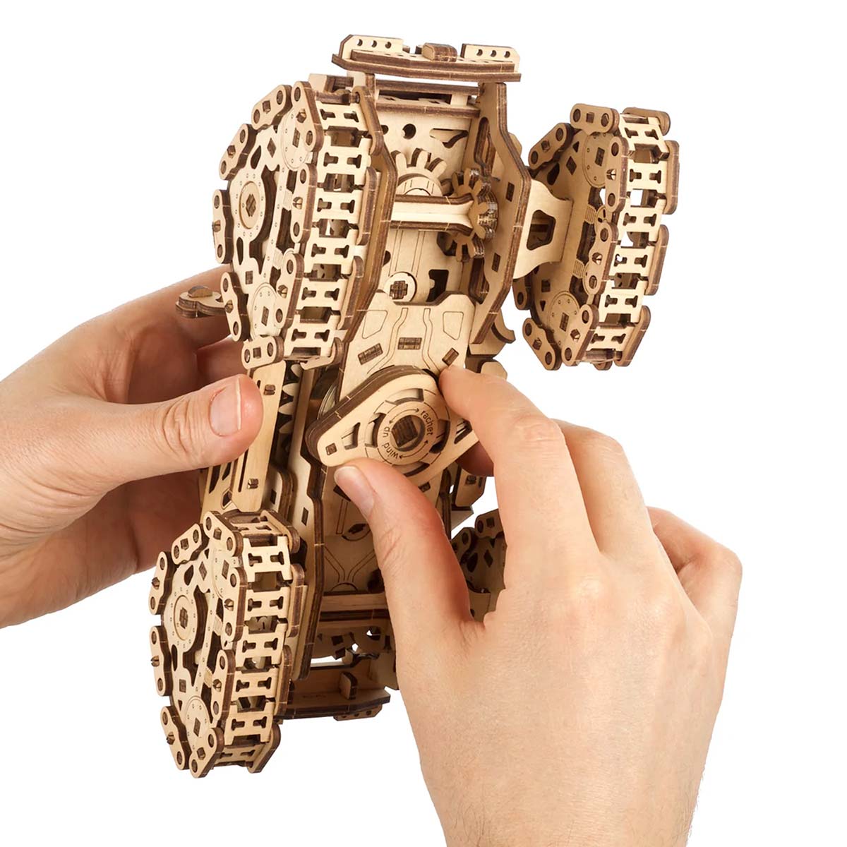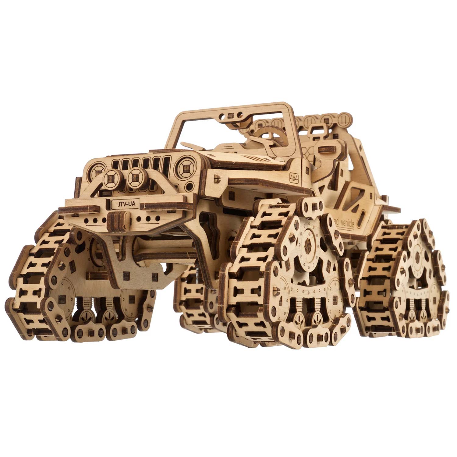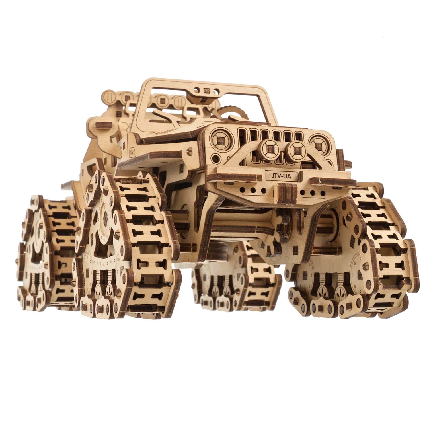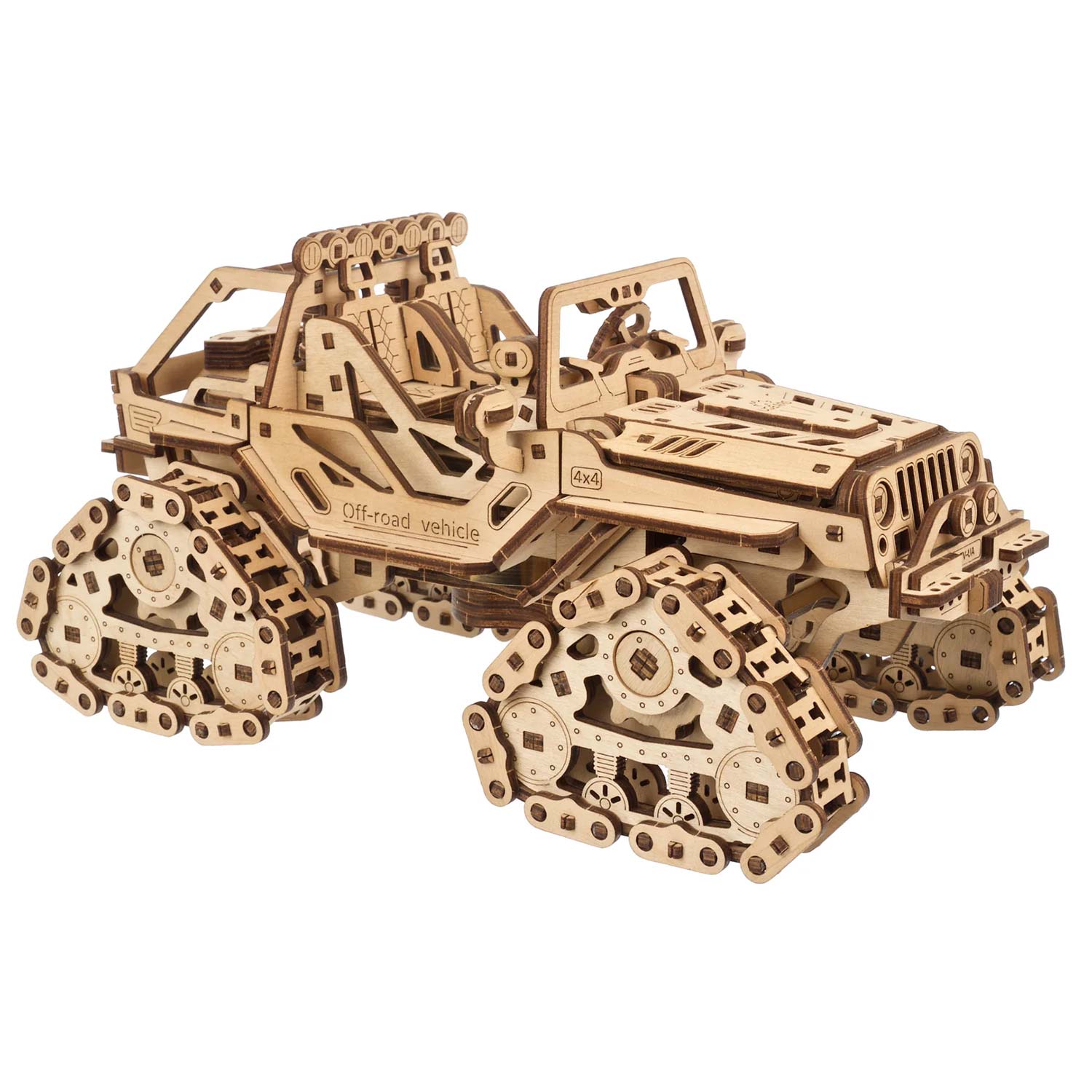 Der Raupen-Geländewagen von Ugears ist ein atemberaubendes Rock-Hopping-Fahrrad, das das Herz zum Stillstand bringt. Was auch immer Ihr 4x4-Geländewagen Ihrer Wahl ist, ob Sie ein UTV für die Jagd oder zur Fortbewegung auf der Farm, ein Sport-ATV für aufregende Trail-Abenteuer, einen Side-by-Side für Familienausflüge auf dem Land oder einen Dünenbuggy verwenden, um zu Ihrer Lieblingsbrandung zu gelangen oder ein Lastwagen für Arbeit und Abenteuer, nur ein Blick auf die Schienen dieses hölzernen Jeep-Modells löst Ihr "Ich will!" Reflex.