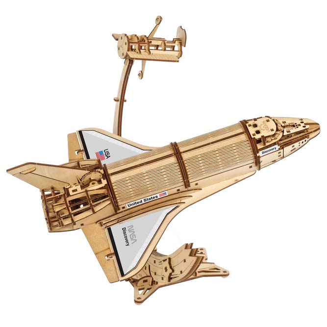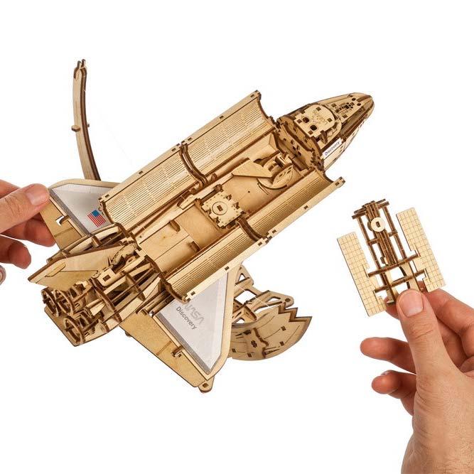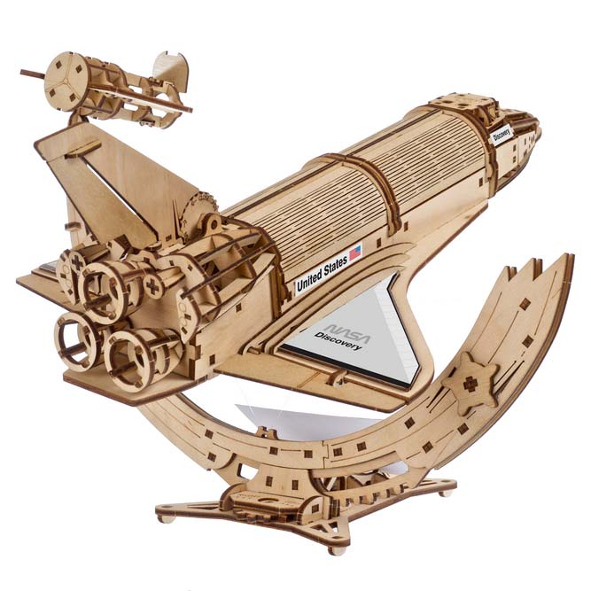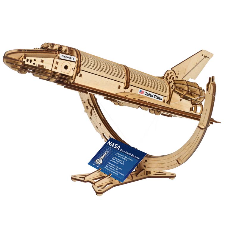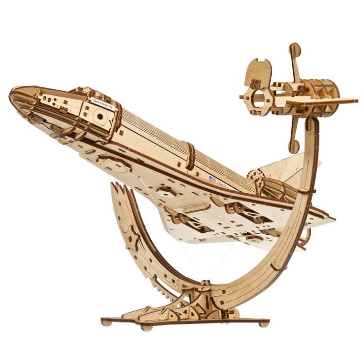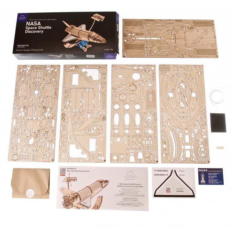 Das Dreifach-Modell NASA-Raumfähre Discovery hat das Schwierigkeitsniveau Fortgeschritten (für erfahrene Modellbauer/innen) und wird mit Sicherheit einen Ehrenplatz im Regal oder auf einem Tisch in Ihrem Wohn- oder Schlafzimmer oder im Büro einnehmen. Wie alle Ugears Modelle und 3D-Puzzles aus Holz kann die Discovery ohne Klebstoff oder spezielle Werkzeuge zusammengebaut werden, indem Sie einfach der detaillierten und illustrierten Anleitung in 11 Sprachen folgen (Englisch, Ukrainisch, Deutsch, Spanisch, Französisch, Italienisch, Portugiesisch, Polnisch, Japanisch, Chinesisch und Koreanisch)