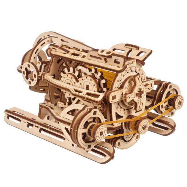 Die lasergeschnittenen Bauteile werden ganz ohne Klebstoff zusammengefügt. Als Ergebnis entstehen beeindruckende 3D-Modelle mit Selbstantrieb oder besonderen Funktionen. Die Modelle sind für Bastler ab 14 Jahre gedacht - die Funktionsmodelle sind kein Kinderspielzeug.