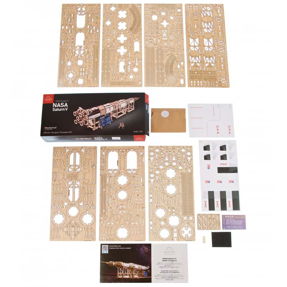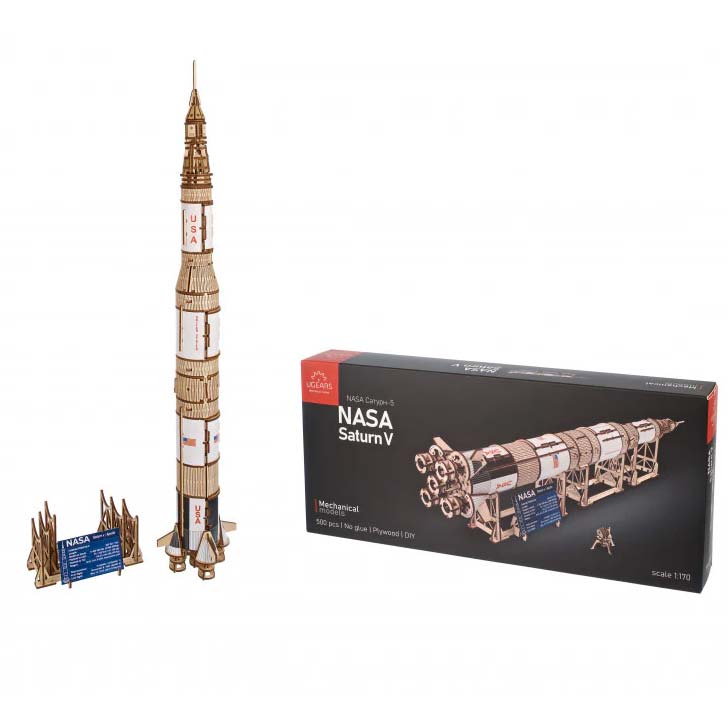 Die dreistufige Rakete NASA Saturn V von Ugears hat den Schwierigkeitsgrad Fortgeschritten und richtet sich somit an erfahrene Modellbauer. Sie ist ein beeindruckendes Ausstellungsstück für Ihr Wohn- oder Schlafzimmer oder fürs Büro.