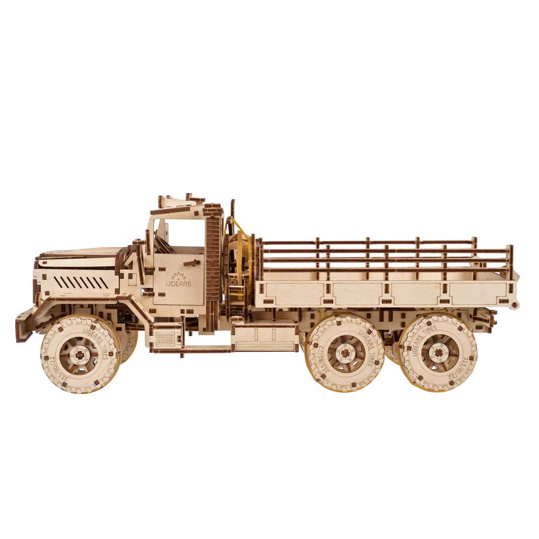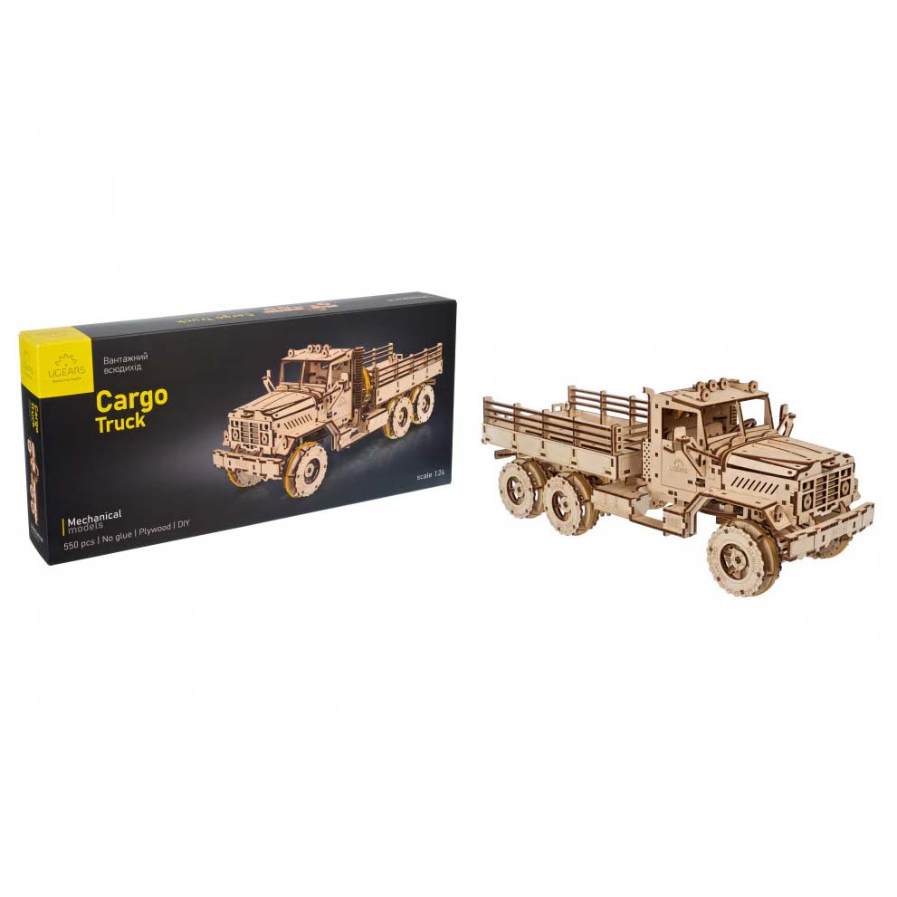 Der Bausatz Cargo Truck von Ugears ist der größte und kraftvollste 3D Holzmodell-Lastkraftwagen. Dieser federbetriebene DIY Lkw mit dem Schwierigkeitsgrad Fortgeschritten ist ein Modell mit einer Vielzahl beweglicher Teile und spannenden wirklichkeitsgetreuen Details. Drei voll abgefederte Achsen und zwei Differenzialgetriebe - eins für die Vorderachse, das andere für die Hinterachsen - ermöglichen es Ihrem Cargo Truck, jedes Terrain zu erobern und sich allen Herausforderungen zu stellen. Ähnlich wie der Mack NO 7,5 t 6x6 Cargo Truck und der Diamond T 4 t 6x6, die während des 2. Weltkriegs von der U.S. Army und den Alliierten eingesetzt wurden, ist auch der Ugears Cargo Truck ein kraftvolles Allwetter-Geländefahrzeug.