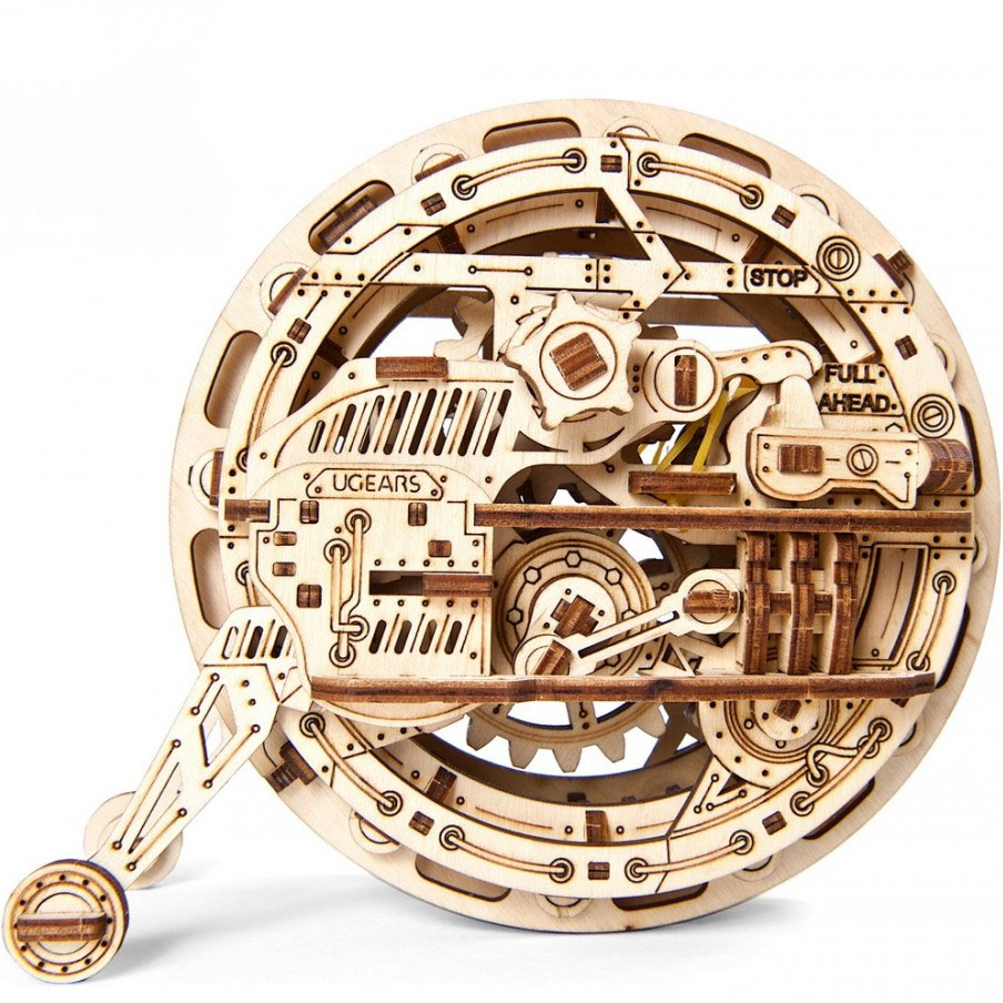 Das Ugears Monorad ist mit einem originellen Getriebe ausgestattet, das von seinen Vorgängeren aus den 1860er Jahren inspiriert wurde. Der Bausatz hat ein bewegliches Aussenelement und einen stationären Mechanismus im Inneren, der einen Dampfmotor imitiert. Der Aufziehmotor, umgesetzt mit Gummibändern, bietet zwei verschiedene Fahrmodi, die das Monorad zwischen 1,5 und 5 Metern fahren lassen.