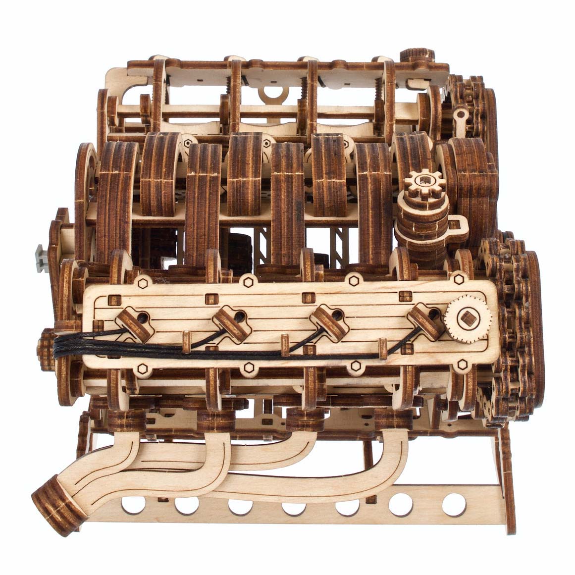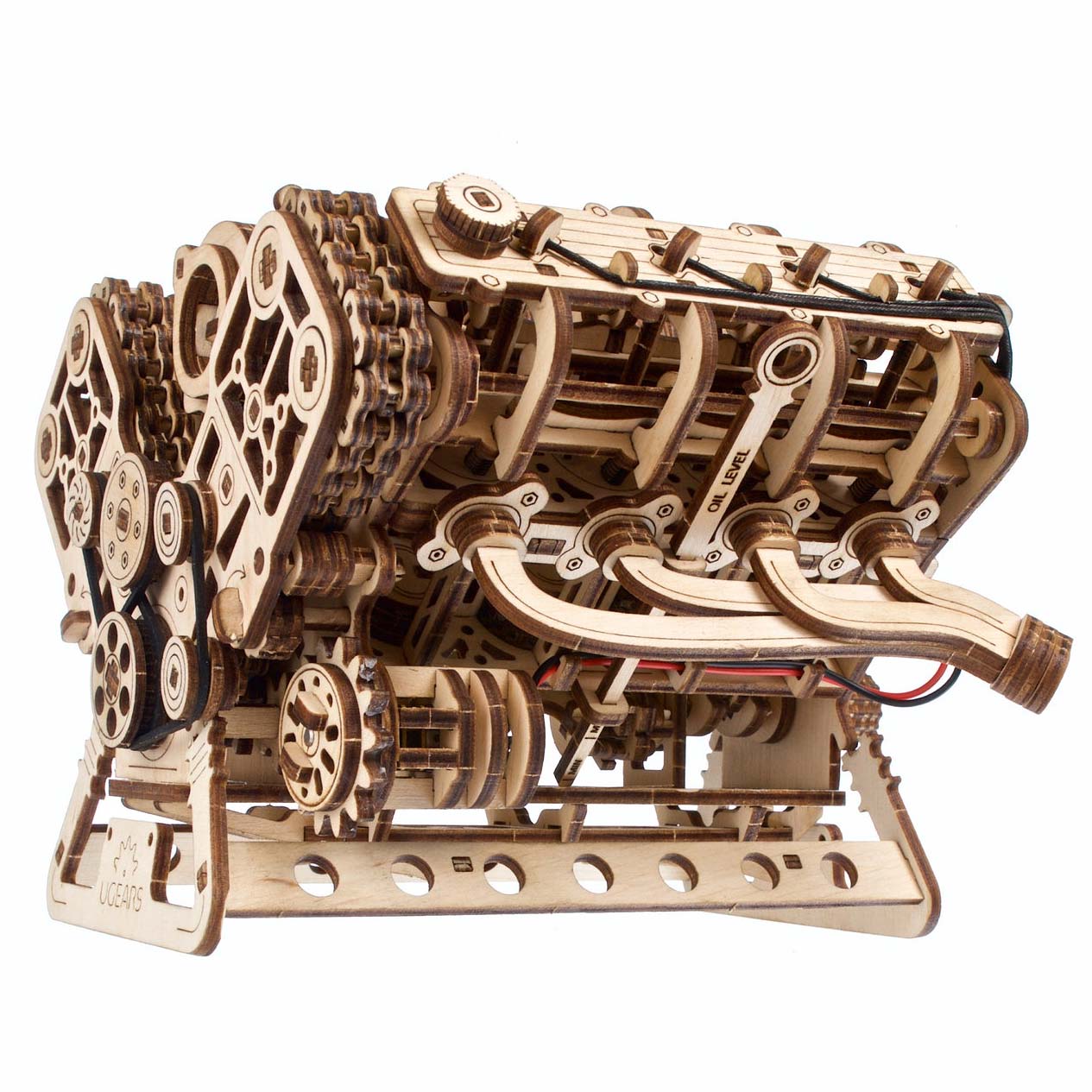 Der V8-Motor von Ugears hat den Schwierigkeitsgrad Fortgeschritten und richtet sich an erfahrene Modellbauer/innen. Ihre Anstrengungen werden belohnt: Während Sie dieses realitätstreue Holzmodell eines Motors zusammenbauen und wenn Sie es danach in Betrieb setzen, werden Sie die Funktionsweise eines Verbrennungsmotors besser verstehen.