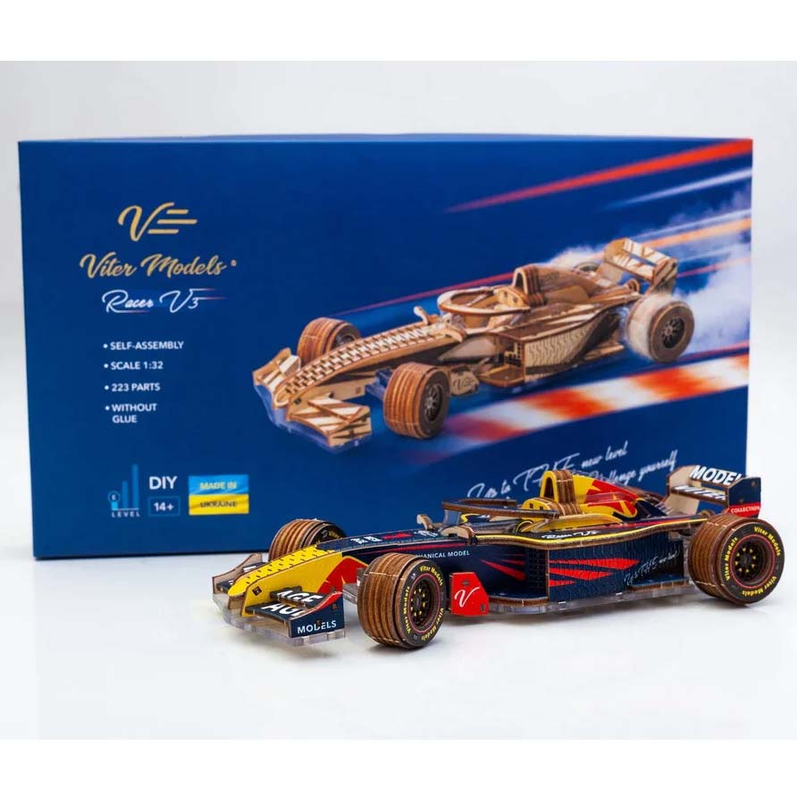Der Racer V3 in der Farbe RB (Red Bull) ist ein DIY-Bausatz von Veter Models für Erwachsene. Der Rennwagen ist die perfekte Ergänzung für jede Kollektion und läuft bis zu 10 Meter. Bewundern Sie den schönen betriebsbereiten 8-Zylinder-V-Motor und die rotierenden Vorderräder! Mit 223 perfekt zugeschnittenen Teilen, einer leicht zu lesenden Bedienungsanleitung und einem wunderschönen Modell wird Sie dieser mechanische Holzbausatz sicherlich beeindrucken.