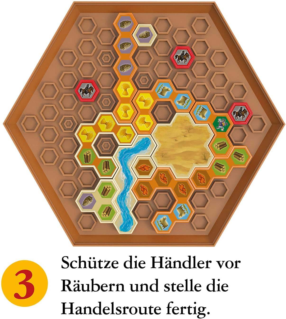 | Format: | 40 Rätselkarten, 10-Handelsrouten-Teile, 5 Räuber-Teile, 5 Ritter-Teile, 5 Siedlungs-Teile, 5 Stadt-Teile, 2 Fluss-Teile, 1 Wüsten-Teil, Spielanleitung |