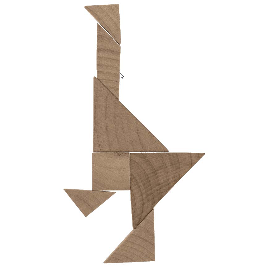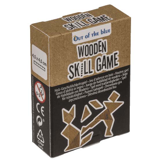 Das Geschicklichkeitsspiel "Tangram" aus Holz ist ein klassisches Legepuzzle, bei dem man die Puzzleteile zu verschiedenen Figuren zusammenlegen muss. Das Puzzle passt in eine Verpackung, die nur etwas größer als eine Streichholzschachtel ist.
