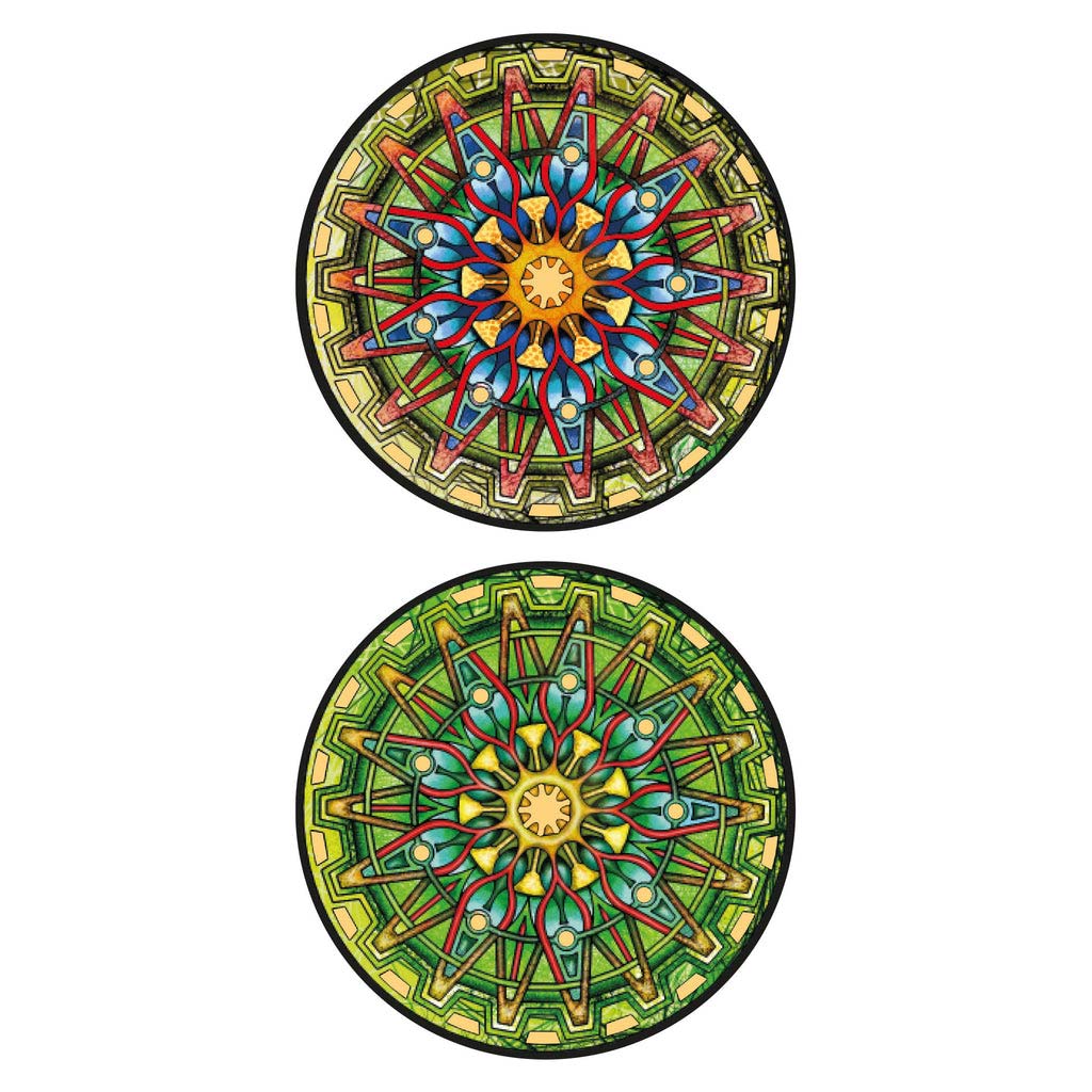 Ausführung:, Holzpuzzle mit Goldglanzeffekt, 154 Teile, 18,5 cm Durchmesser, 2 Motive auf Vorder- und Rückseite. Ein schönes Geschenk.