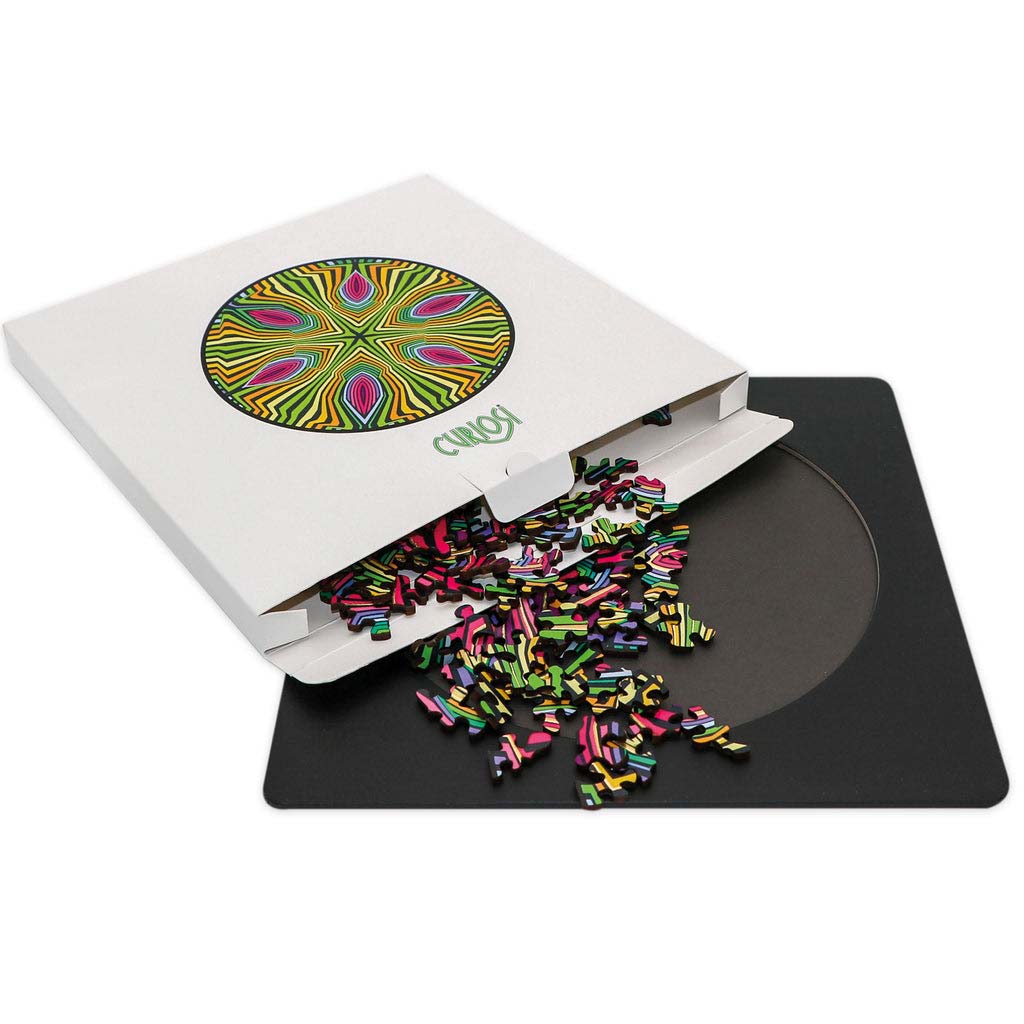 Das Puzzle Double "Hippie": Da kann man sich schon mal die Haare raufen. Die Motive auf Vorder- und Rückseite sind so ähnlich gestaltet, dass man nie so genau weiß: wo ist oben, wo ist unten. Ein herrlich kniffliger Puzzlespaß. Ein passendes Puzzletablet (23,5 x 23,5 cm) aus Holz ist in der Box enthalten.