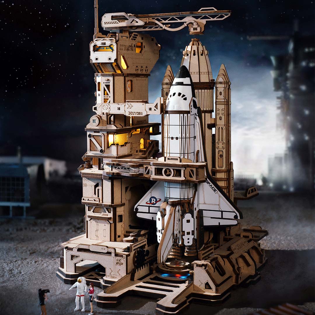 Erlebe die Spannung und den Nervenkitzel eines riskanten Raumschiffstarts mit dem Space Shuttle Holzpuzzle. Hier kannst du in die Rolle des Missionsleiters schlüpfen und deine komplette Startsequenz auf einer mehrstufigen, mechanischen Basis mit Lichtern und Motor vorbereiten. Zwei Raketenbooster, die den Orbiter flankieren, machen das Shuttle besonders realistisch. Es ruht in horizontaler Position, bis du den Knopf drückst, um das Schienensystem auf der Startrampe zu aktivieren. Dadurch wird das Shuttle in die Vertikale gehoben. Die Roboterarme des Turms drehen sich um 90 Grad und fahren ein, Lichter blinken sechsmal, um den bevorstehenden Start anzukündigen, und LED-Flammen unter den Raketen lodern auf. Fliege und träume zu den Sternen mit diesem fantastischen Set von ROKR Puzzle und Spektakel in einem!