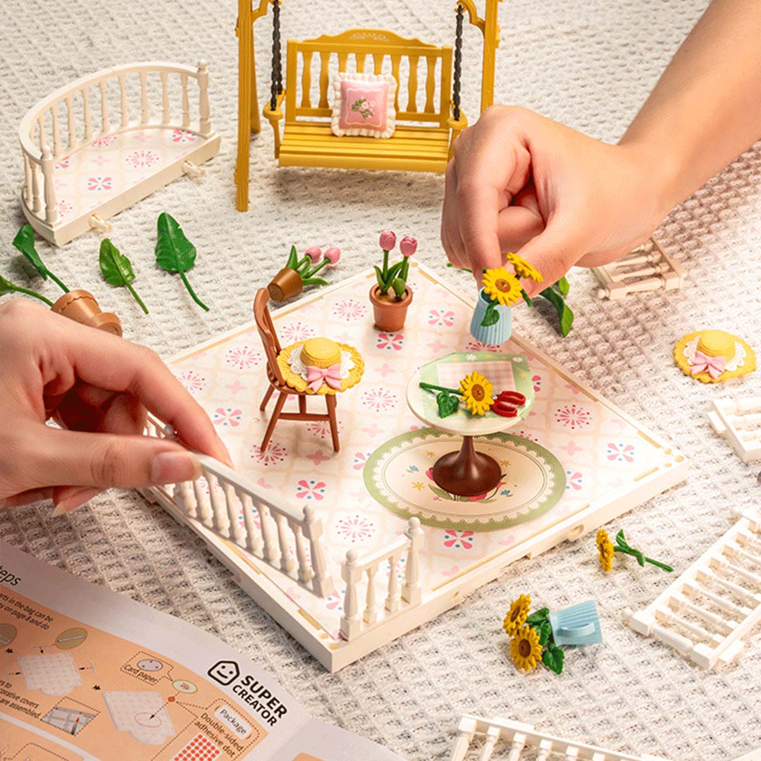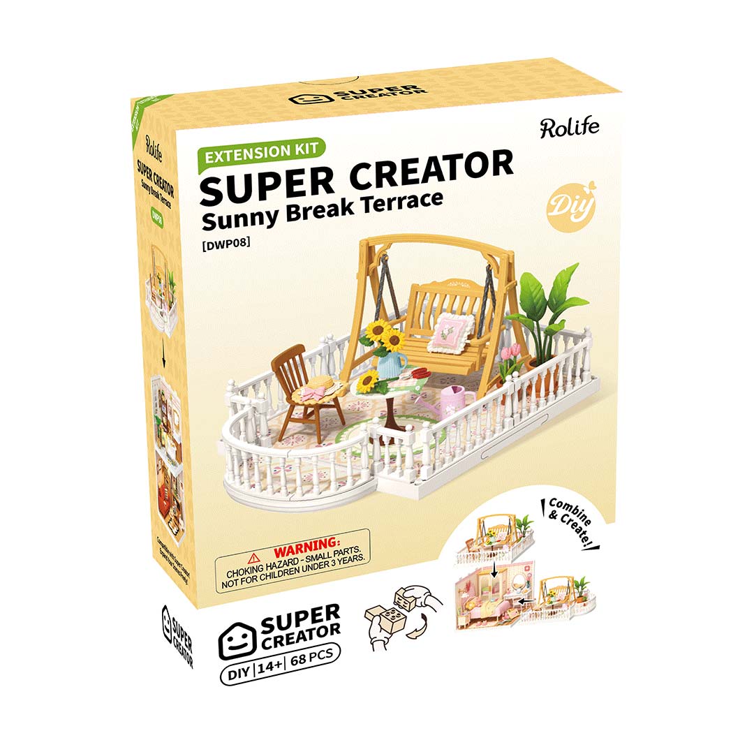 Das Terrassen-Erweiterungsset ist für die Nutzung mit Ihren Rolife Super Creator-Räumen konzipiert. Einfach aufstecken und schon haben Sie einen gemütlichen Balkon oder eine hübsche Café-Ecke. Ob Sie sich einen sonnigen Platz zum Entspannen oder einen stilvollen Treffpunkt wünschen mit diesem Set können Sie Ihren Traum-Lifestyle im Miniaturformat verwirklichen.