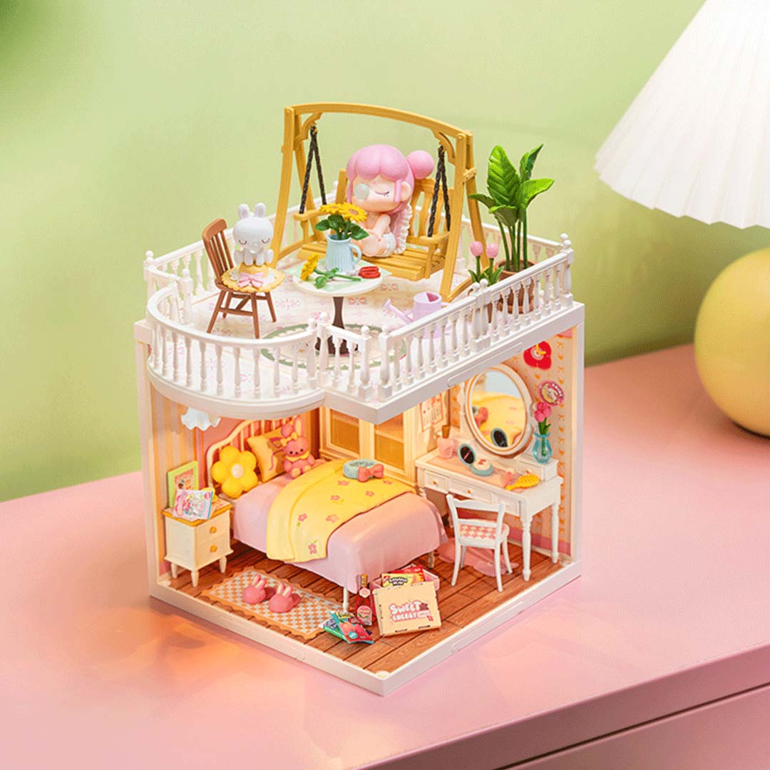 Der Bausatz "Sunny Break Terrace" aus der DIY Super Creator Serie von Rolife ist eine Dachterrasse, die auf einen anderen Raum der Reihe aufgesetzt werden kann.