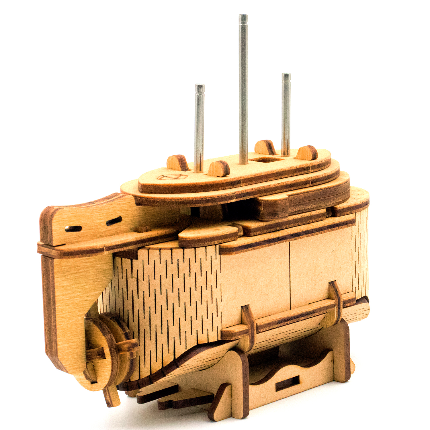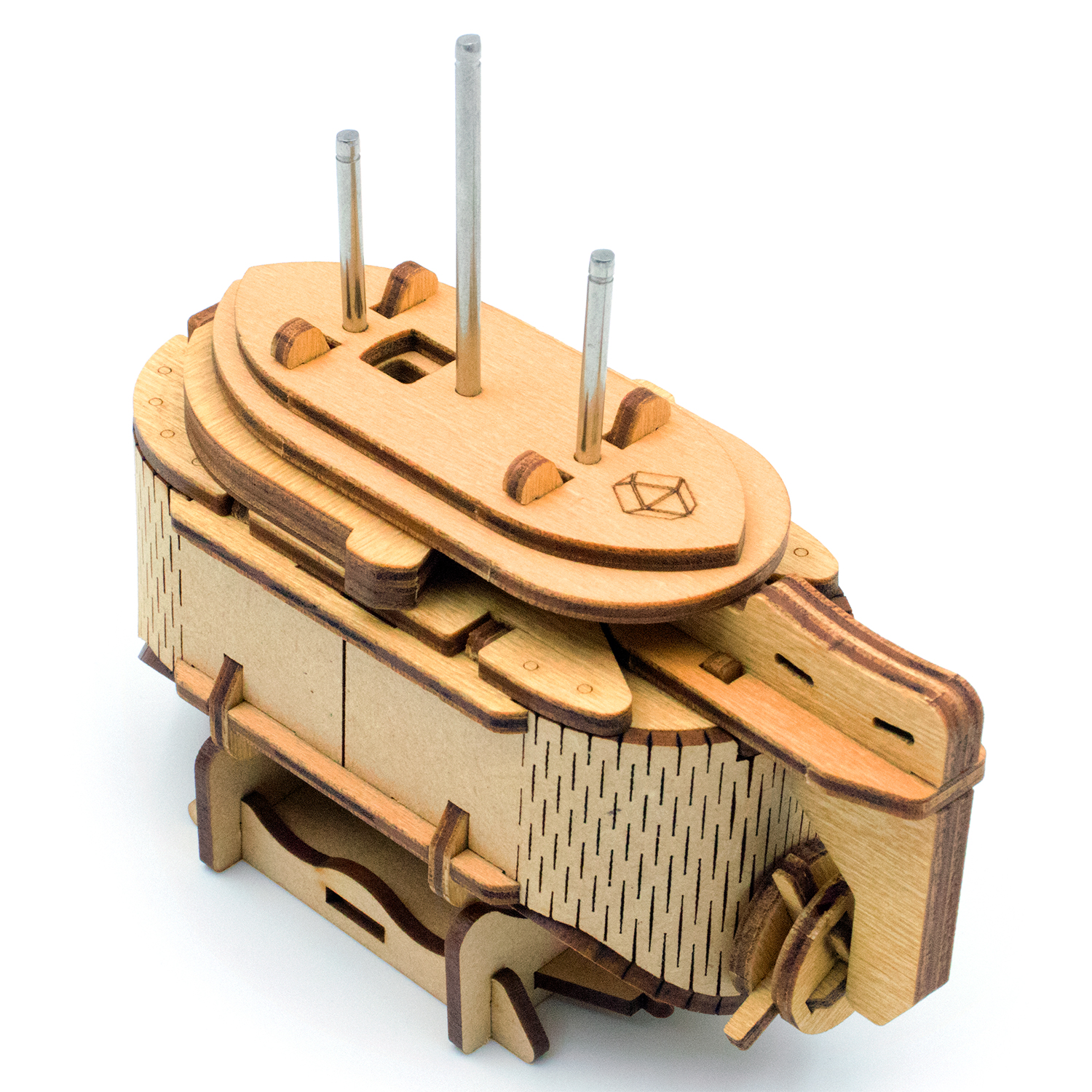 Die Teslas Boat Puzzle Box ist eine faszinierende Puzzlebox, inspiriert von technischen Innovationen und der Experimentierfreude Nikola Teslas. Mehrere versteckte Mechanismen und Denkaufgaben führen Schritt für Schritt zum geheimen Fach im Inneren.