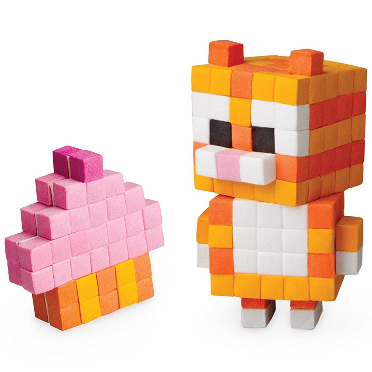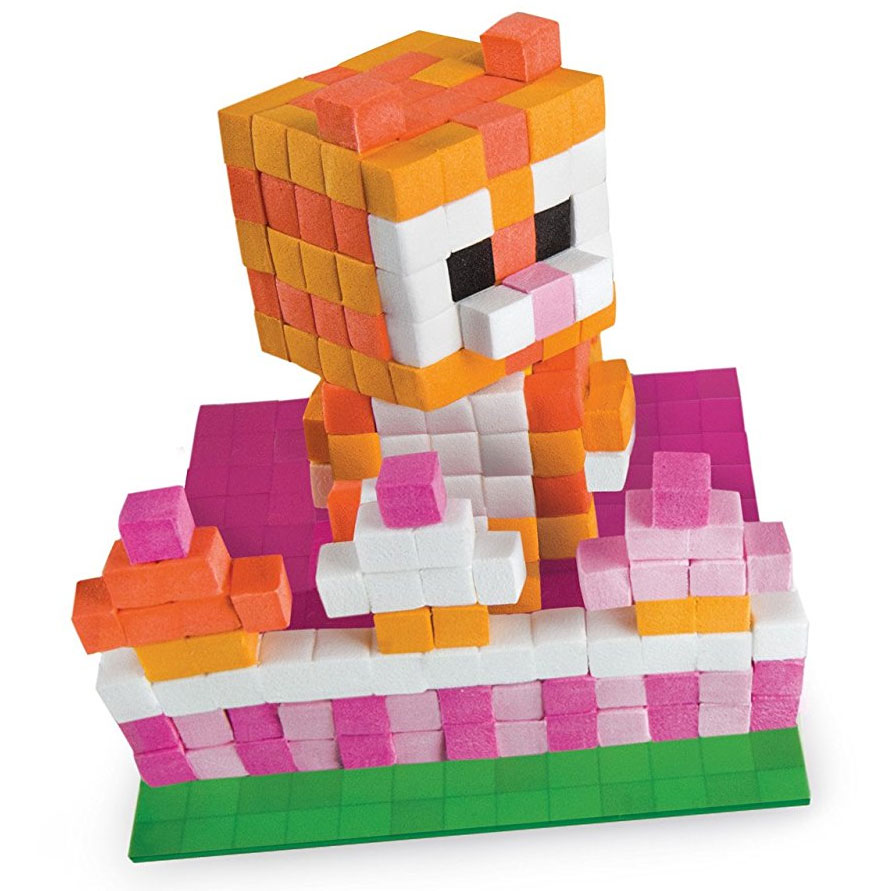 Mit dem Pixel Pops Set "Kitten" basteln Kinder ihr ganz persönliches, lustiges Pixel-Lieblingstier: Einfach mit dem speziellen Stift die weichen Schaumwürfel greifen und nach Anleitung Schicht für Schicht auf die beiliegenden Basisträger kleben und stabeln. So entsteht im Nu ein entzückender Begleiter und Talisman. Das einzigartige Spielprinzip der Pixel Pops spricht Mädchen und Jungen gleichermaßen an.