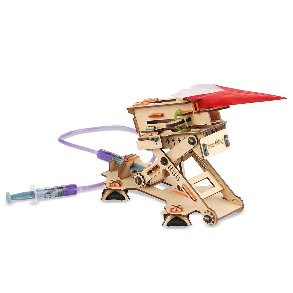 Auf in luftige Höhen lass mit dem Hydraulic Plane Launcher von Smartivity Papierflugzeuge fliegen! Baue mit der einfachen Schritt-für-Schritt-Anleitung deinen eigenen Plane Launcher und gestalte ihn mit Stiften und Farben nach deinem Geschmack. Ein spannendes Set, um mehr über Hydraulik und Aerodynamik zu lernen.