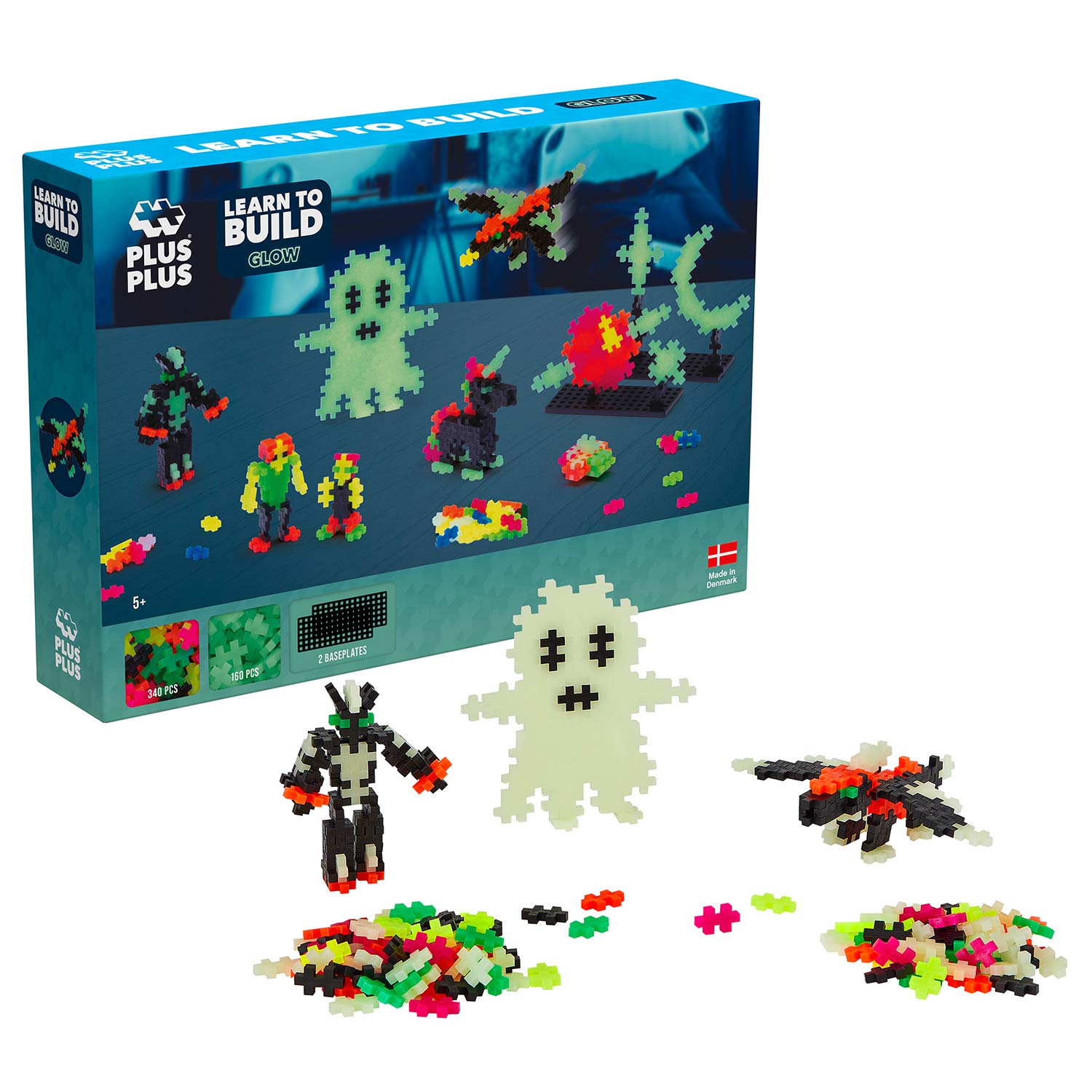 Lerne mit Plus-Plus, coole Glow-in-the-Dark-Bauten zu bauen. Dieses Set zeigt Kindern, wie sie einfache Figuren, Geister, Weltraum-Einhörner und vieles mehr bauen können. Das Set enthält 500 Teile in gemischten Farben sowie die coolen, im Dunkeln leuchtenden Teile, die die Kreationen besonders hervorheben. Zum Set gehören auch 2 kleine Basisplatten und eine Anleitung.
