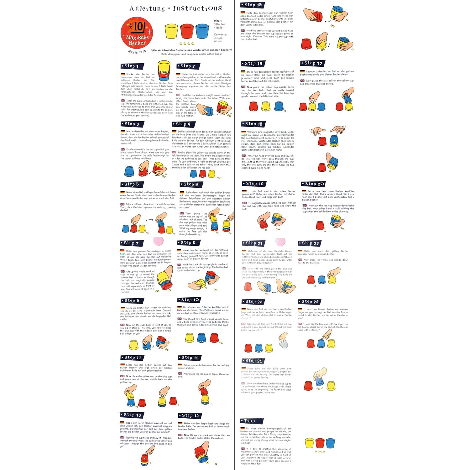 Bälle verschwinden und erscheinen wieder unter anderen Bechern! Mit diesem Zaubertrick kannst du einzelne Bälle auf magische Weise unter einem Becher verschwinden lassen und sie anschließend unter einem anderen Becher wieder hervorzaubern - einfach verblüffend! Die leicht verständliche, bebilderte Anleitung zeigt dir, worauf es bei dieser verblüffenden Illusion ankommt. Zusätzlich erhältst du 5 Tickets, mit denen du zu deiner eigenen MAGIC SHOW einladen kannst.