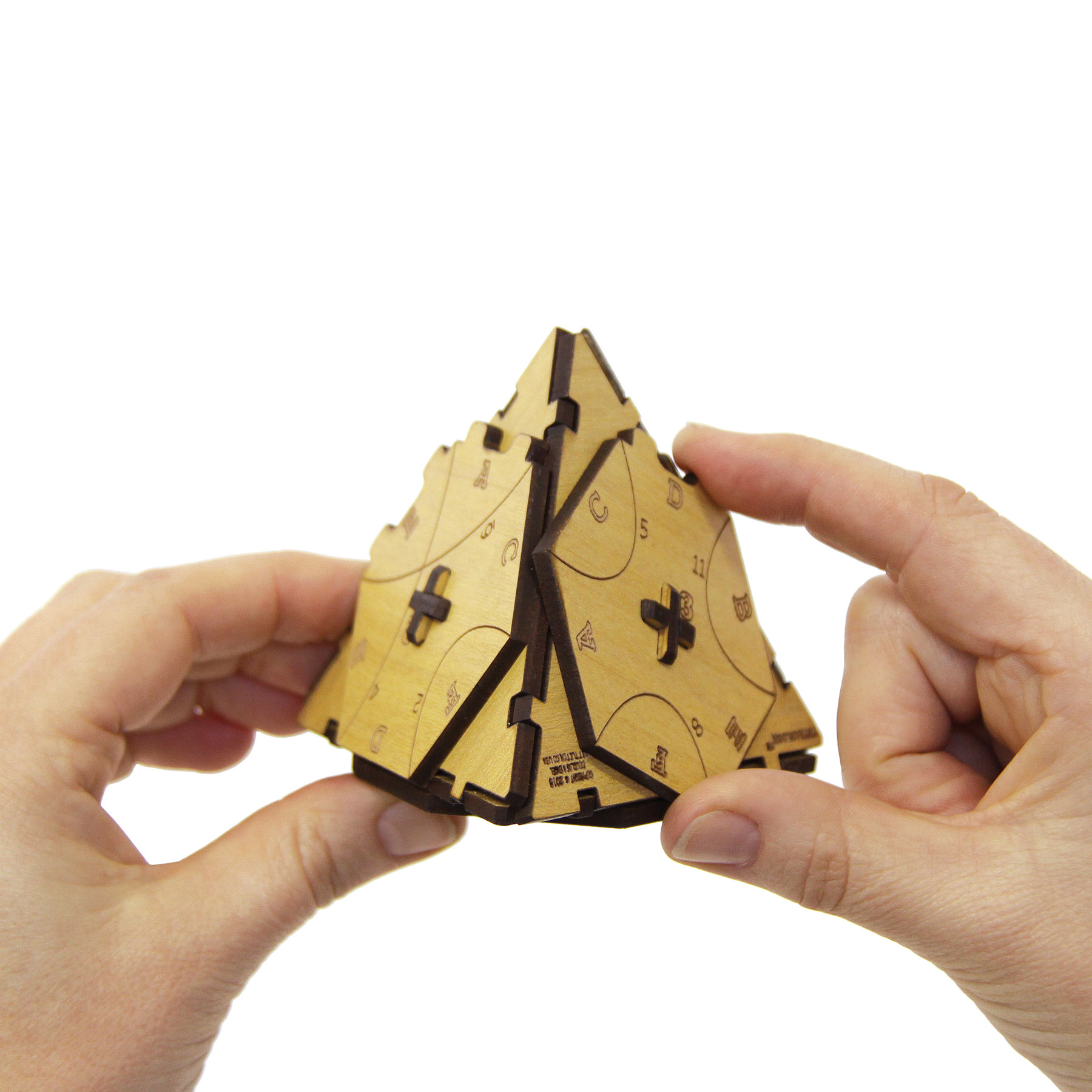 Dieser vierseitige Würfel wird Sie auf zweierlei Art und Weise verblüffen. Gelingt es Ihnen, die Drehscheiben so zu positionieren, dass die Buchstaben an den angrenzenden Seiten übereinstimmen? Denken Sie gut nach, wie Sie drehen, damit sich auf der anderen Seite des Würfels nichts ändert. Im nächsten Schritt müssen Sie eien Linie erstellen, die ohne Unterbrechung von 1 bis 12 geht. Wer hätte gedacht, dass Buchstaben und Zahlen so schwierig sein können?