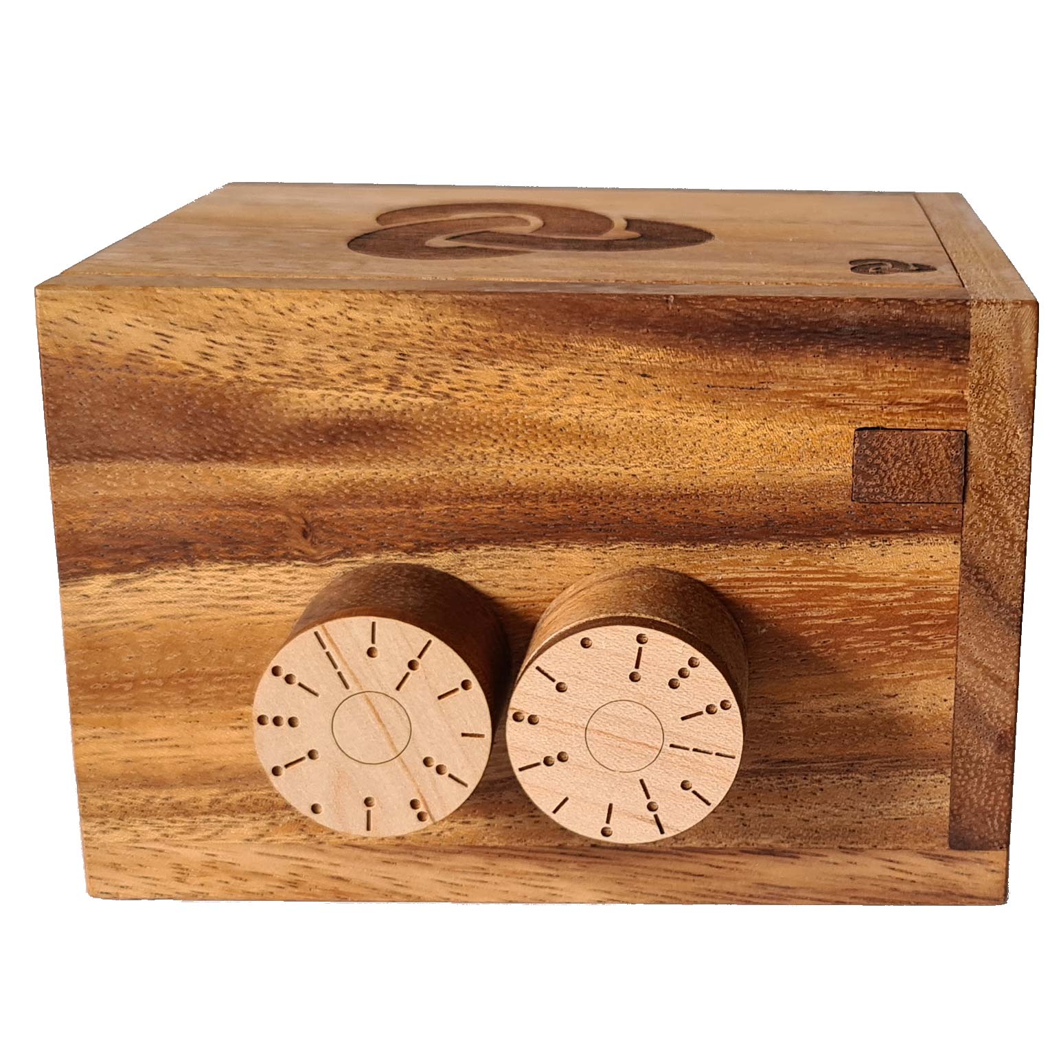 Die Overtime Box Series II ist eine Trickbox mit mehreren Schritten, die wahrscheinlich die besten Puzzler herausfordern wird. Diese Version ist gegenüber der Serie I mit einem zusätzlichen Stift und zusätzlich mit ein bisschen Komplexität ausgestattet. Die Serie II Box ist mit dem Knobelbox-Logo, das in die Oberseite gelasert ist, verziert.