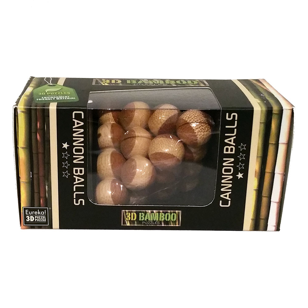Kleines Bambus Puzzle "Cannon Balls". Mit etwas Know How und Geschick läßt sich das Puzzle zerlegen und wieder zusammen puzzlen.