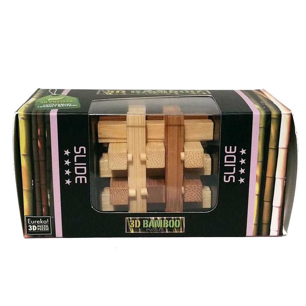 Kleines Bambus Puzzle "Slide". Mit etwas Know How und Geschick läßt sich das Puzzle zerlegen und wieder zusammen puzzlen.