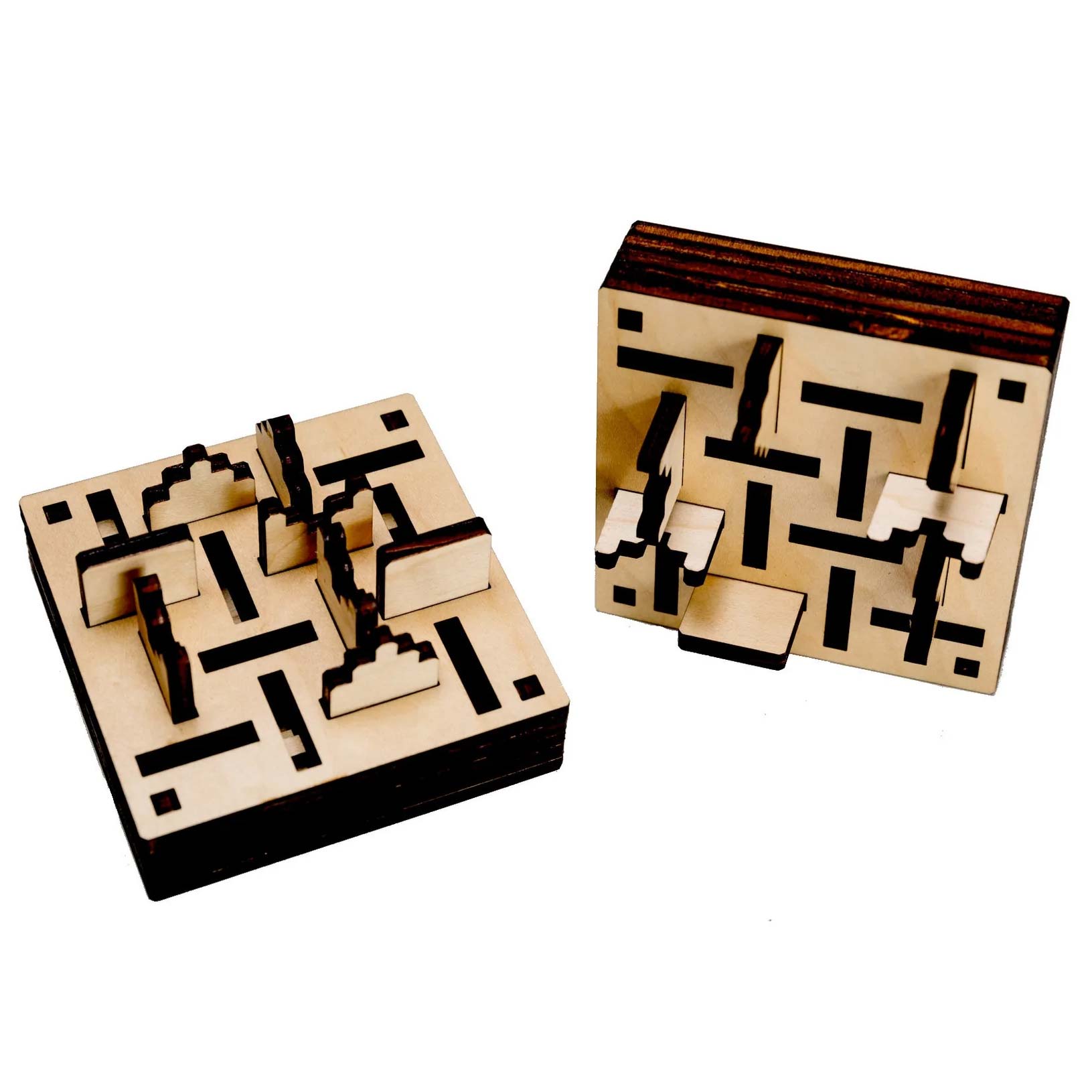 Arcanum ist ein originelles Denksportpuzzle aus Holz, das gelöst wird, indem 16 verschiedene Teile richtig in die Aussparungen gelegt werden, damit sich die Kiste vollständig schließen kann. Dieses wunderschön gearbeitete Puzzle besteht aus hochwertigem Ahornholz mit einem wunderschönen Finish. Arcanum hat eine kreative Lösung, die immer wieder Spaß macht und für ein einzigartiges Objekt sorgt, das zu Hause oder im Büro ausgestellt werden kann. Ihr Puzzle kommt mit den Lösungen, falls ein paar Hinweise benötigt werden.