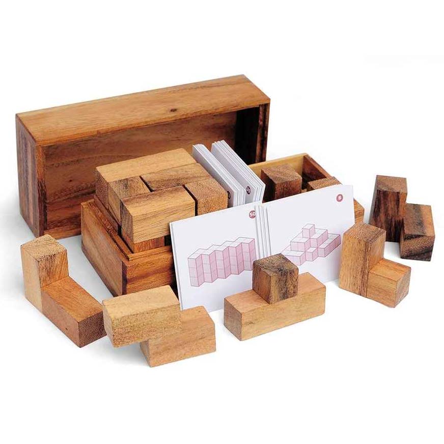 Das Doppel-Soma 3 D ist eines der ältesten geometrischen 3D-Rätsel, der Vorfahr aller modernen Rätsel. Aufgabe für 2 Spieler: Wer bildet den Würfel und 50 weitere Figuren mit den enthaltenen Karten am schnellsten? In der Schachtel befinden sich 2 komplette Würfel Tetris 3D Soma und 50 Karten, die die zu bildenden Figuren darstellen. Wer es als Erster schafft, die vorgegebene Figur zu bilden, hat gewonnen! Auf der Vorder- und Rückseite der Karte sind jeweils die zu bildende Figur und deren Lösung dargestellt.