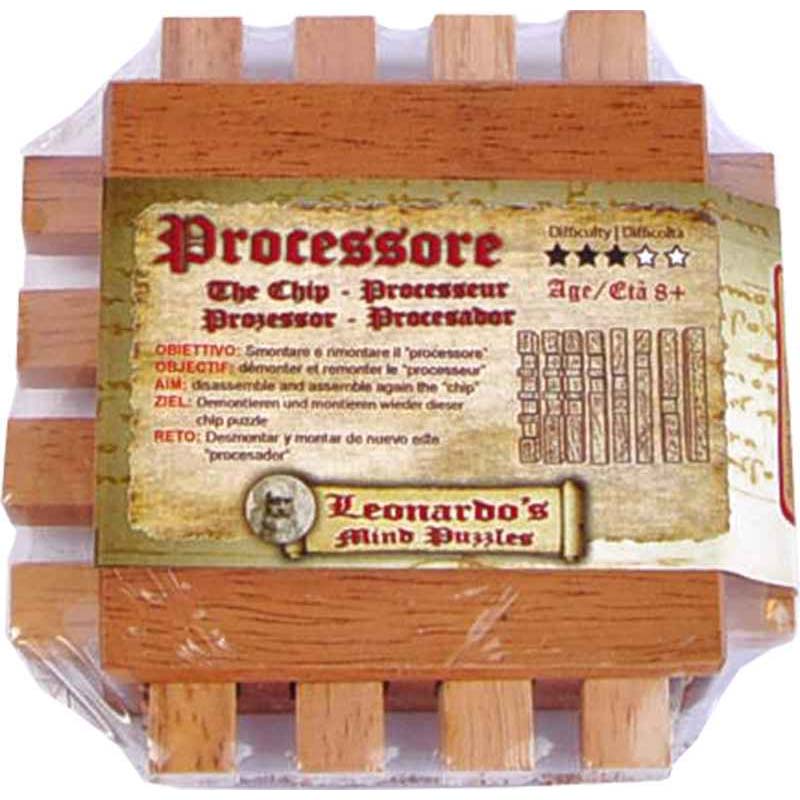 Chip ist ein 3D Puzzle aus der Leonardo da Vinci Serie. Das Holzrätsel in Form einen Prozessors des PCs. Aufgabe: Zerlegen Sie das Puzzle in seine 9 Einzelteile und setzen sie diese wieder zusammen.