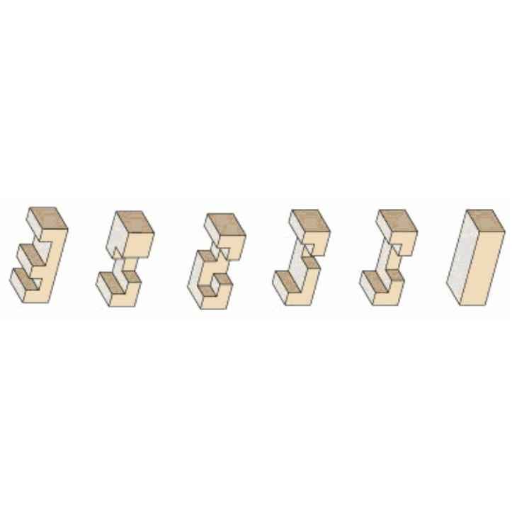 Das Burr Puzzle aus der Serie Leonardo's Mind Puzzles ist ein klassisches Holzpuzzle. Aufgabe: Würfel zerlegen und wieder zusammenbauen. Es besteht aus 6 Teilen.