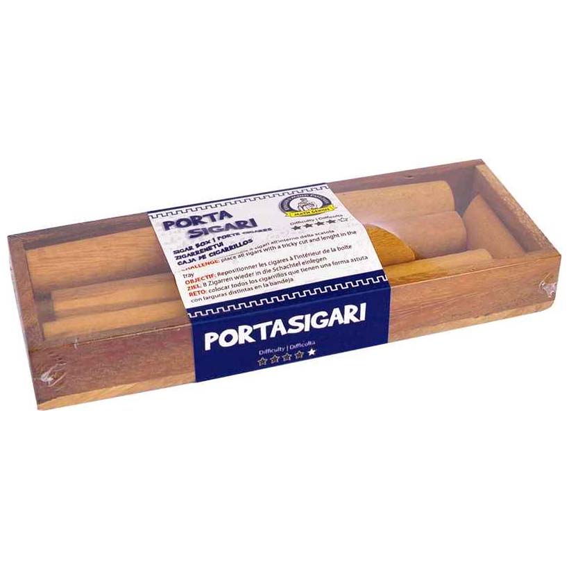 Zigarrenetui ist ein Legepuzzle bestenend aus einer Box und 8 Puzzleteilen. Aufgabe ist es, die 8 "Zigarren" in die Schachtel wieder einzulegen. Alle müssen wagenrecht liegen: nicht senkrecht, schräg, geraucht oder vergessen