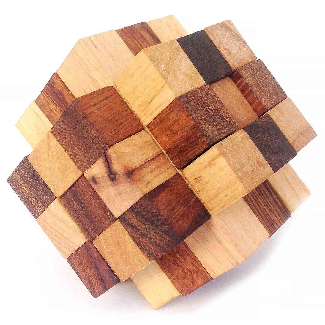Fonzo ist ein 3D-Puzzle mit einer eher klassischen Form. Es besteht aus 33 Teilen mit 2 Holzqualitäten: Teak und Caucciù! Eine perfekte Verbindung ohne Löcher und eine interessante Montagereihenfolge machen diesen Würfel zu einem echten Juwel in der Sammlung eines Enthusiasten. Aufgabe: Nehmen Sie den 33-teiligen Würfel auseinander und setzen Sie ihn wieder zusammen.