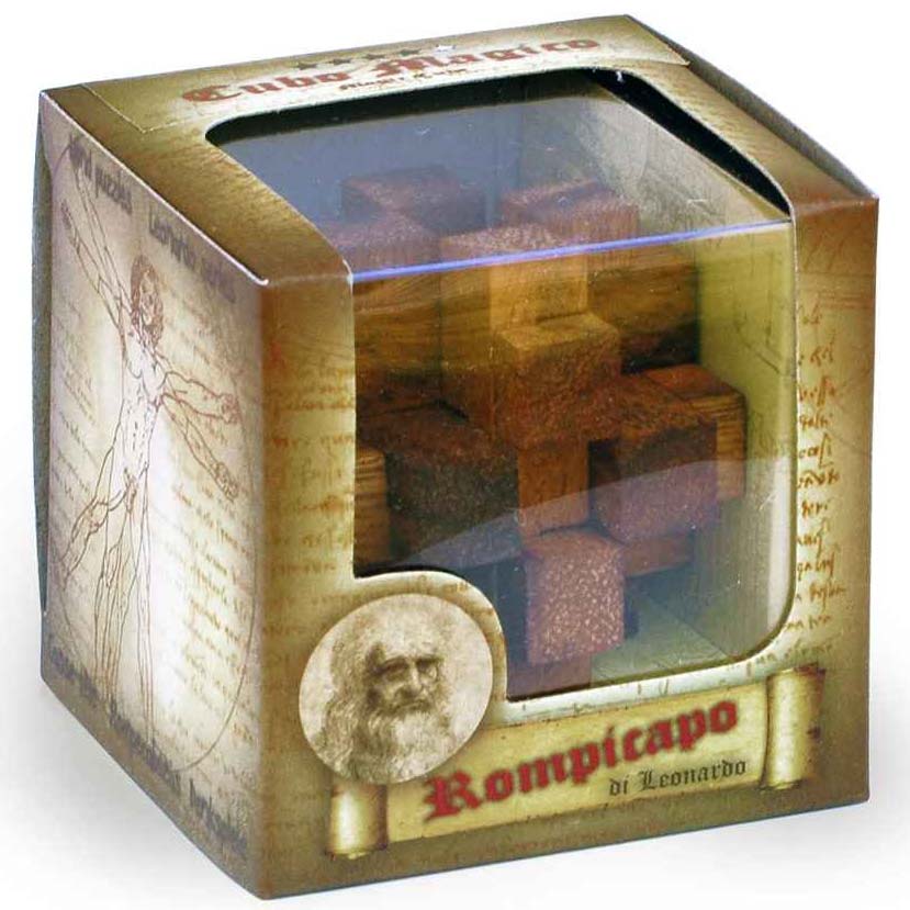 Der magische Würfel aus der Serie Leonardo's Mind Puzzles ist ein klassisches Holzpuzzle. Aufgabe: Den Würfel aus 12 Teile auseinandernehmen und wieder zusammenbauen.