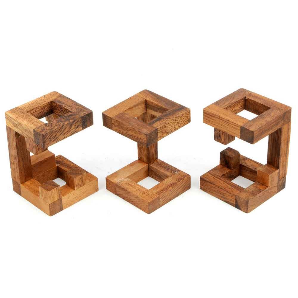 Der Ter Cube ist ein Holzpuzzle bestehend aus 3 Teilen. Aufgabe: Den Cube auseinandernehmen und wieder zusammensetzen. Lassen Sie sich von den wenigen Teilen nicht täuschen, das ist gar nicht so einfach!