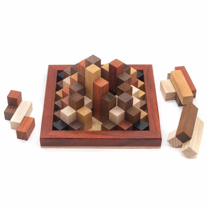 Die Cristal Pyramide ist ein 3D Puzzle von Jean Claude Constantin. Aufgabe ist es, aus den einzelnen Puzzleteilen eine Pyramide zu formen, die in die Form passt.