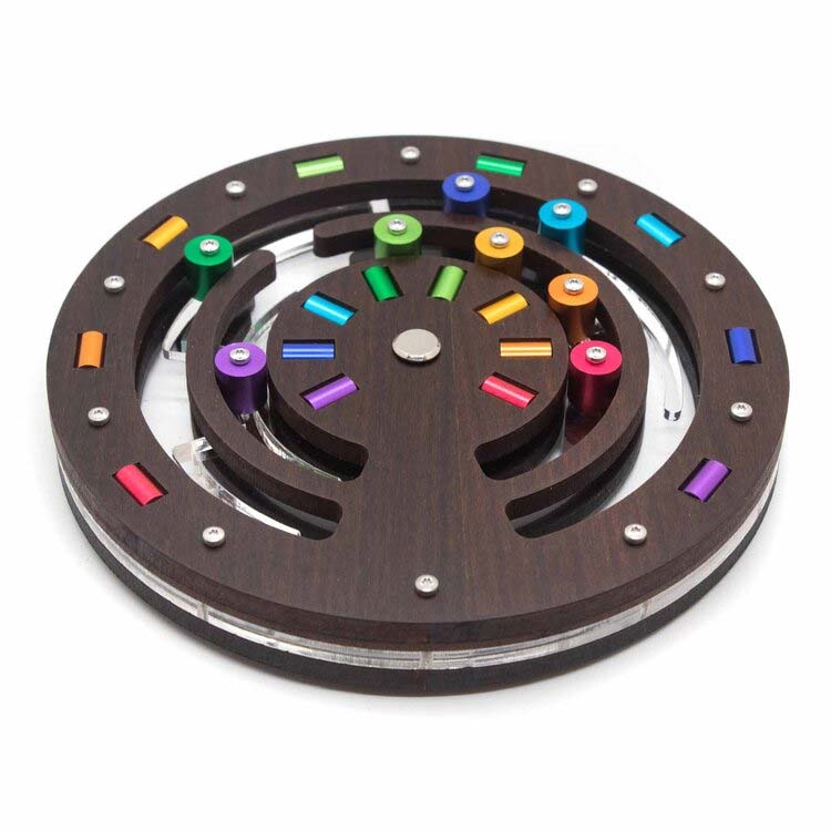 Rainbow Tree ist ein Schiebepuzzle mit einem durch einen Kreis umschlossenen Baum. Die 8 Trommeln, die sich im Baum befinden, müssen durch eine Aussparung in den äußeren Kreis gebracht werden. Dabei müssen die Trommelfarben zu den entsprechenden Farbelemente außen passen. Anschließend geht der Weg zurück und alle Trommeln müssen wieder farbpassend in den inneren Kreis gebracht werden.