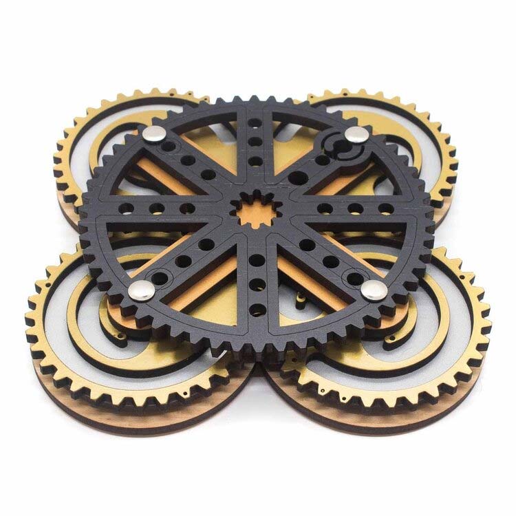 Das Uhrwerk besteht aus vier drehbaren ineinander verzahnten Zahnrädern, die von einem weiteren Zahnrad gehalten werden. In diesem Zahnrad befinden sich pro drehbarem Zahnrad drei Löcher, im jeweils äußeren Loch befindet sich eine Kugel. Aufgabe ist es, die vier Kugeln durch drehen der vier Zahnräder in die MItte zu bekommen, so dass eine der Kugeln aus dem größeren der Löcher aus dem Uhrwerk befreit werden kann.