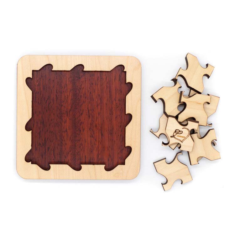 Das Legepuzzle L'Amour besteht aus 9 Teilen. Diese müssen so in die Grundform gelegt werden, dass jedes Loch ein korrektes Herz bildet.