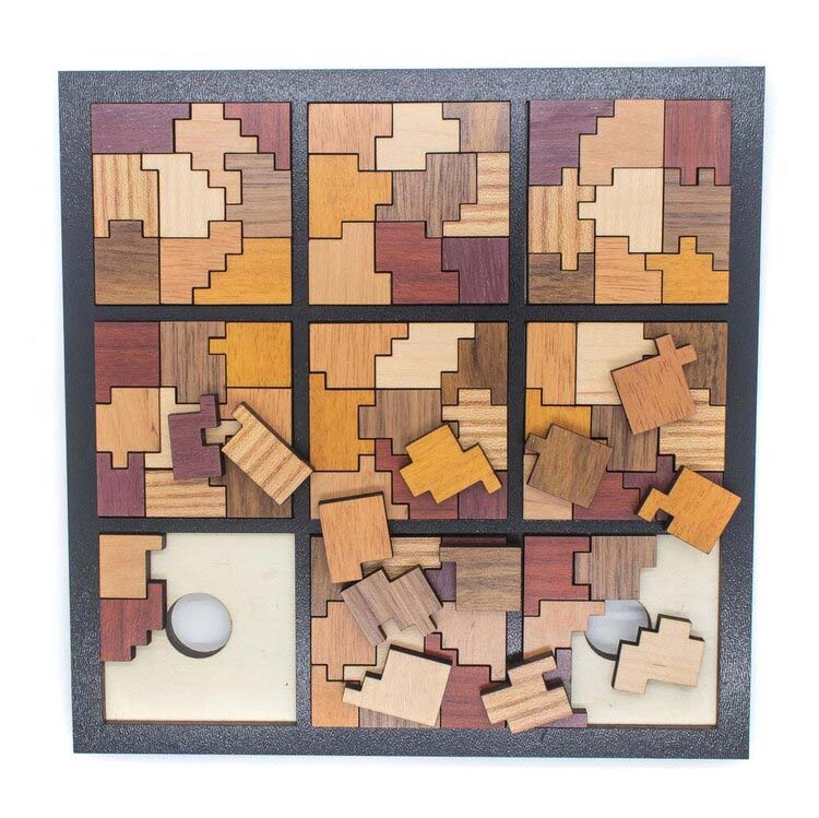 Das 9x9 ist ein Legepuzzle, bei dem der Name bereits alles aussagt. Es besteht aus neun einzelnen Legepuzzle mit jeweils neun Teilen. Zu Beginn kann man jedes Puzzle einzeln lösen. Die Schwierigkeitsstufe steigt, wenn man die Teile von mehreren Puzzle miteinander vermischt. Die Königsdisziplin sind alle neun Puzzle auf einmal!