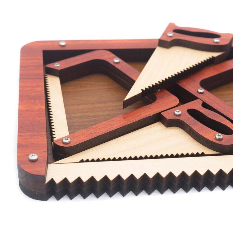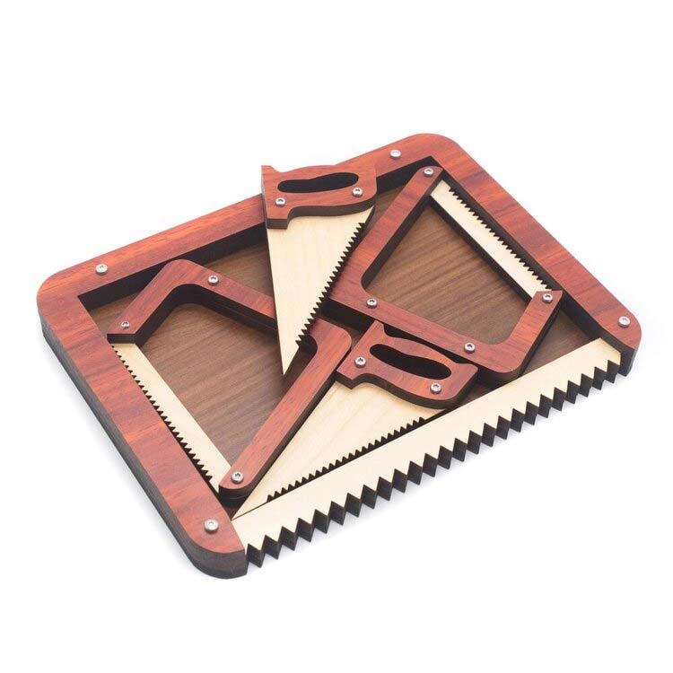 Die Sägerei ist ein Legepuzzle mit vier Puzzleteilen in Form von Sägen. Aufgabe ist es, die vier Sägen in die Grundplatte, ebenfalls eine Säge, zu legen, so dass sie in die Ausformung passen.