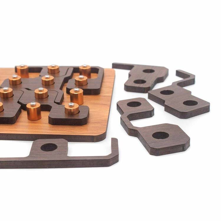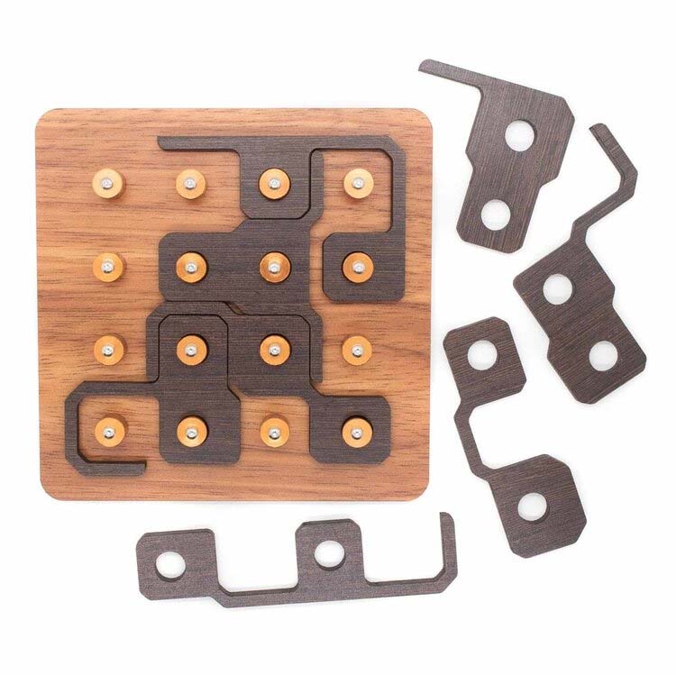 Relox ist ein Legepuzzle von Jean Claude Constantin. Die acht Puzzleteile sidn alle komplett unterschiedlich und sind von beiden Seiten nutzbar. Aufgabe ist es, alle Puzzleteile so als Quadrat zu legen, dass sie mit ihren insgesamt 16 Löchern in die Form passen.