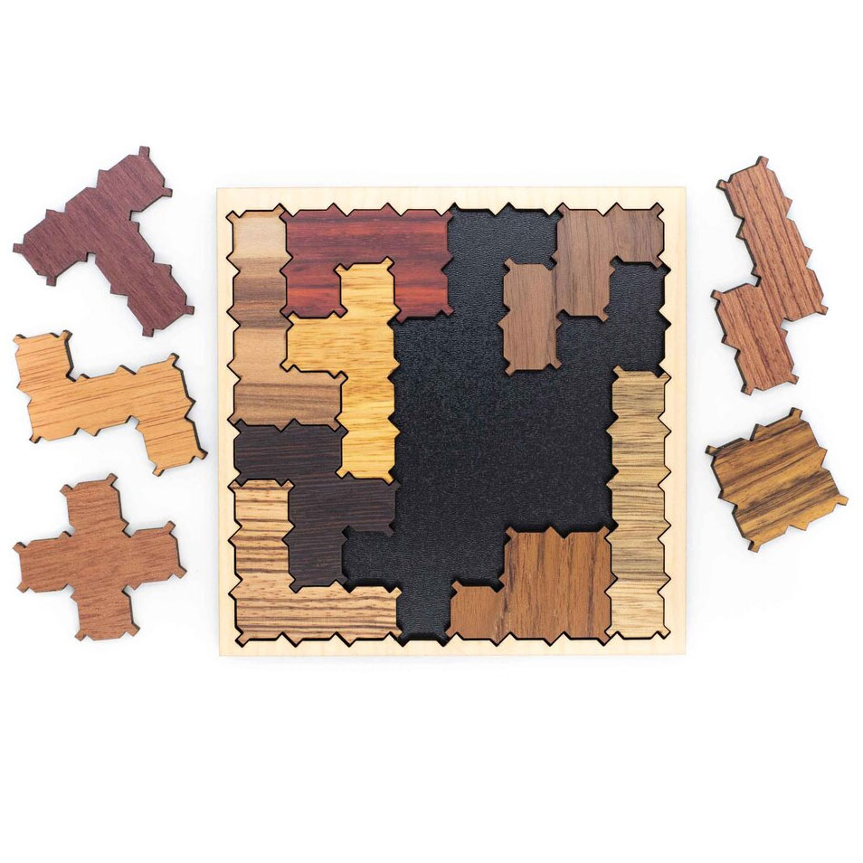 Das Pentazigzag ist ein Legepuzzle mit 13 Puzzleteilen. Aufgabe ist es, die 13 Teile in die vorgegebene Form zu bekommen.