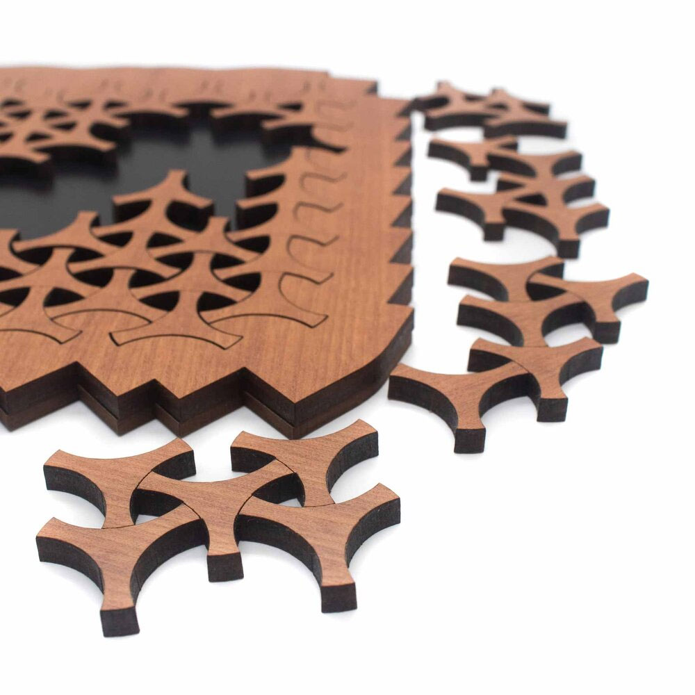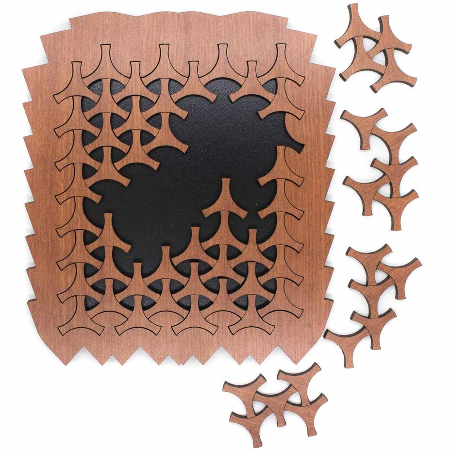 Helice ist ein weiteres Legepuzzle von Jean Claude Constantin. Die unterschiedlich geformten Puzzleteile sind exakt gearbeitet und gleiten geradezu ins Puzzle.