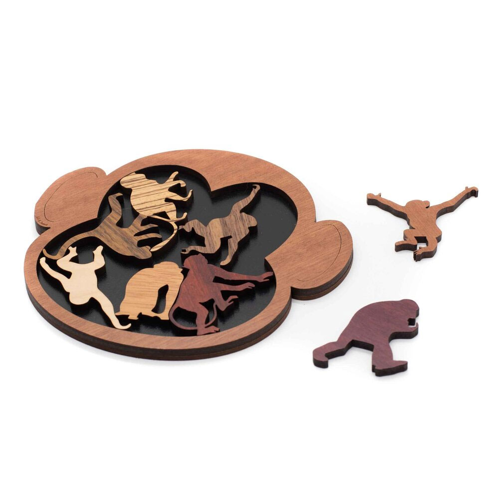 Das Affentheater ist ein Legepuzzle, dass man in drei Varianten spielen kann: