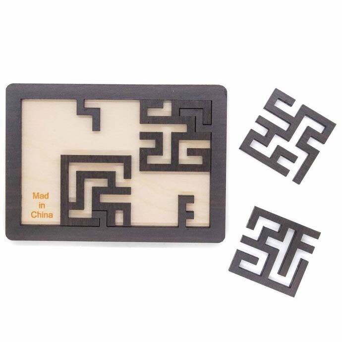 Mad in China (kein Tippfehler) ist ein klassisches Legepuzzle von Jean Claude Constantin. Aufgabe ist es, die vier Puzzleteile in die Form zu bekommen.