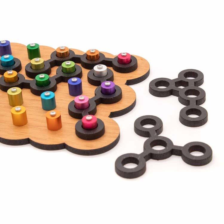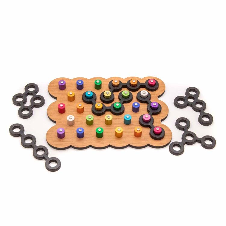 Wolke 7 ist ein Legepuzzle von Jean Claude Constantin. Aufgabe ist es, die Puzzleteile mit den Löchern auf die bunten Elemente auf dem Brett zu legen, so dass alle Elemente belegt sind.