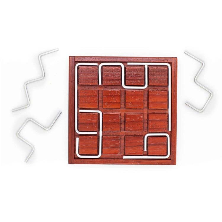 Rechner ist ein Legepuzzle von Jean Claude Constantin. Aufgabe ist es, die unterschiedlich langen und geformten Metallstangen zwischen die Holzblöcke zu legen, ohne dass sie sich überlappen.