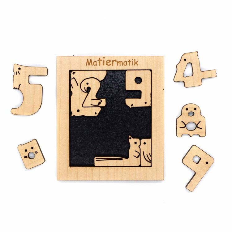 Matiermatik ist ein klassisches Legepuzzle. Die zehn Zahlentierchen (0-9) passen in das Feld. Ein guter Einstieg für ganz junge Mathematiker.