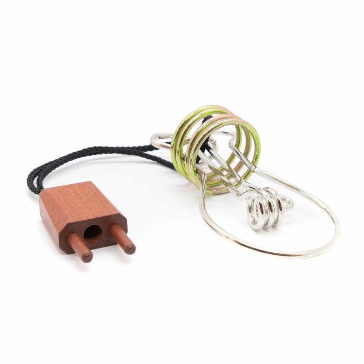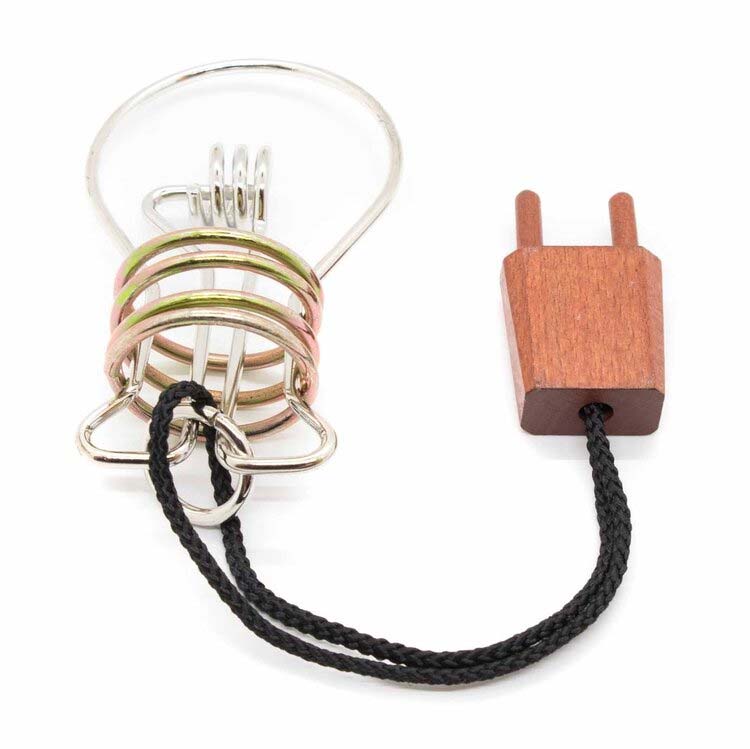 Die Glühbirne ist ein schönes Seilpuzzle von Jean Claude Constantin. Aufgabe ist es, den Stecker von der Glühbirne zu trennen.