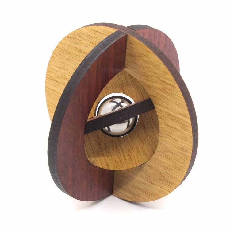 Die Sputnik Kugel besteht aus 4 Holzteilen und einer Metallkugel im Inneren. Dabei scheint der äußere Ringkörper die anderen Teile fest zu umschließen. Aufgabe ist es, das Puzzle in die Einzelteile zu zerlegen und anschließend wieder zusammenzusetzen.