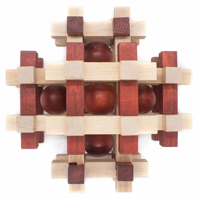 Multiboules ist ein Steckpuzzle von Jean Claude Constantin. Im Puzzle sind insgesamt 6 Kugeln festgehalten. Schaffen Sie es, das Pizzle auseinander zu nehmen und anschließend wieder zusammen zu setzen?
